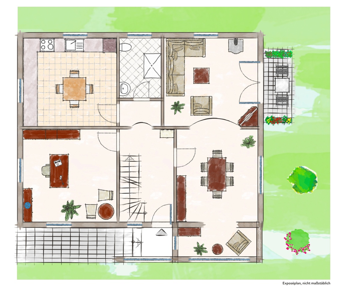 Eine Garage und zusätzliche PKW -Stellplätze runden das familienfreundliche Angebot ab.